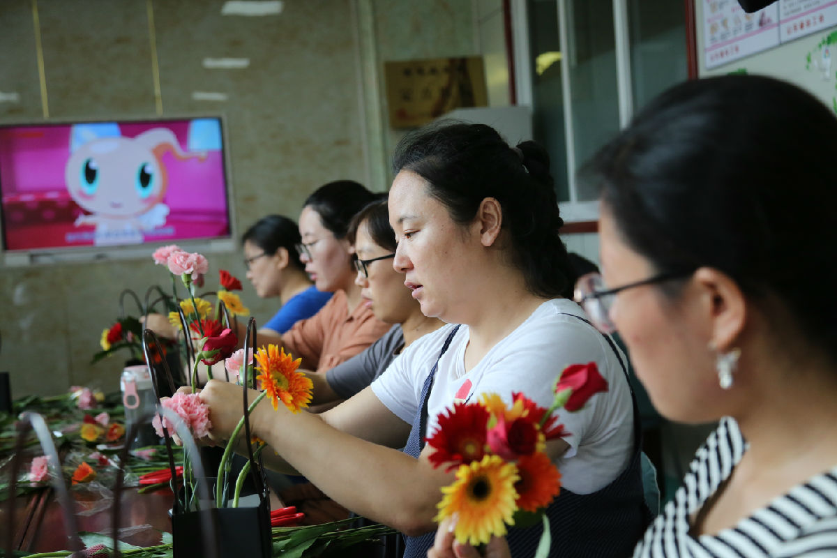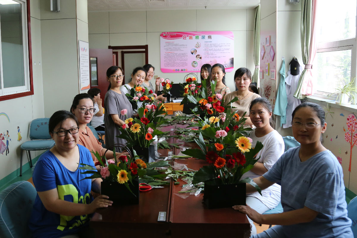 7月22日,我院孕妇学校举办准妈妈插花秀,免费提供鲜花、花篮及相关用品,10余位准妈妈参加。(产科)