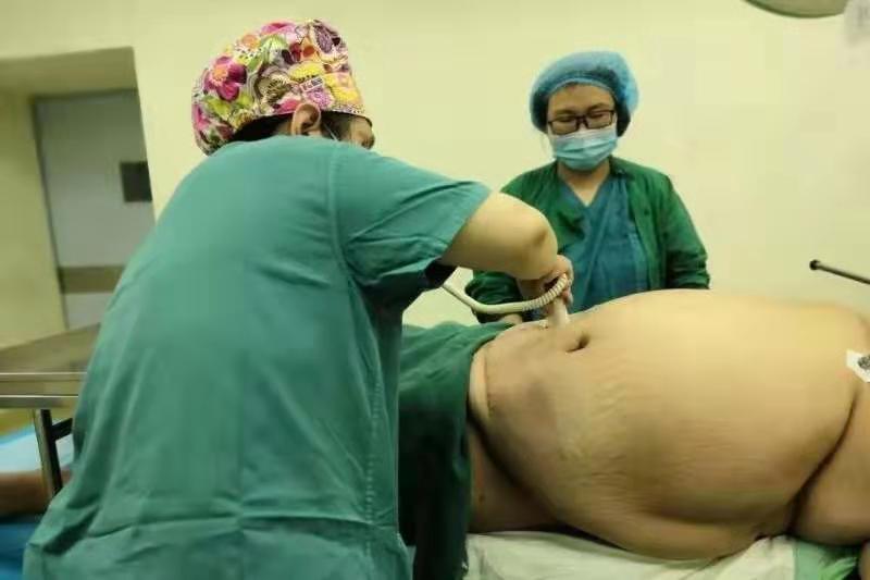 麻醉成功后,产科主刀王静医师和助手董庆芝开始了剖宫产手术,儿科医生也在一旁做好了抢救胎儿的准备。因产妇腹部脂肪堆积,手术切口变窄变深,手术视野不好暴露,手术难度大大增加。