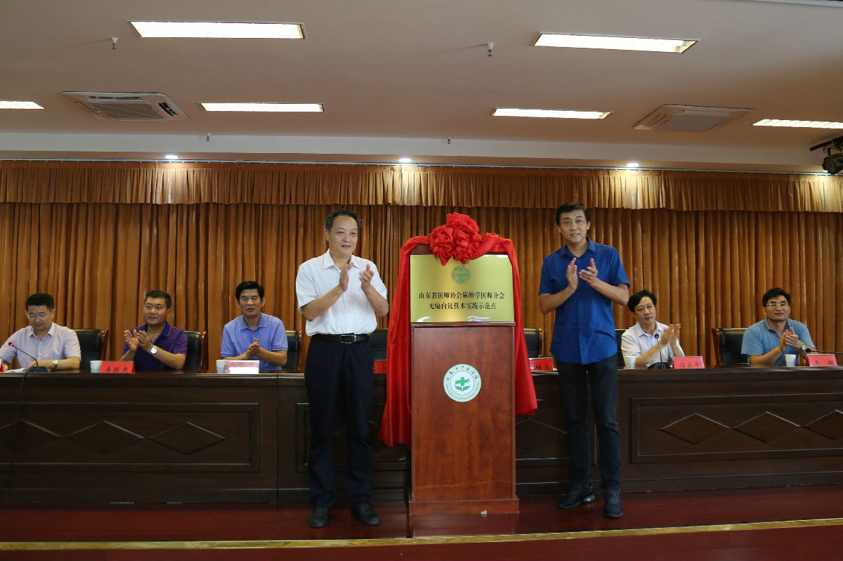 苏帆教授和殷培文主席共同为“山东省医师协会麻醉学医师分会无痛内镜技术实践示范点”揭牌。