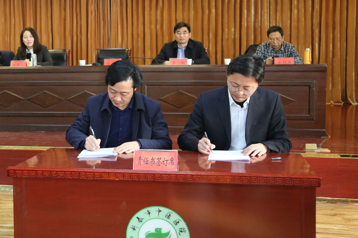在欢快的乐曲声和热烈的掌声中,大会对在过去一年中为医院发展积极奉献、成绩突出的先进集体和个人进行了表扬鼓励。局领导和院领导为获奖者颁发奖牌。5个科室代表分别作表态发言,院长闫家平与相关科室负责人签订2020年度综合目标责任书。